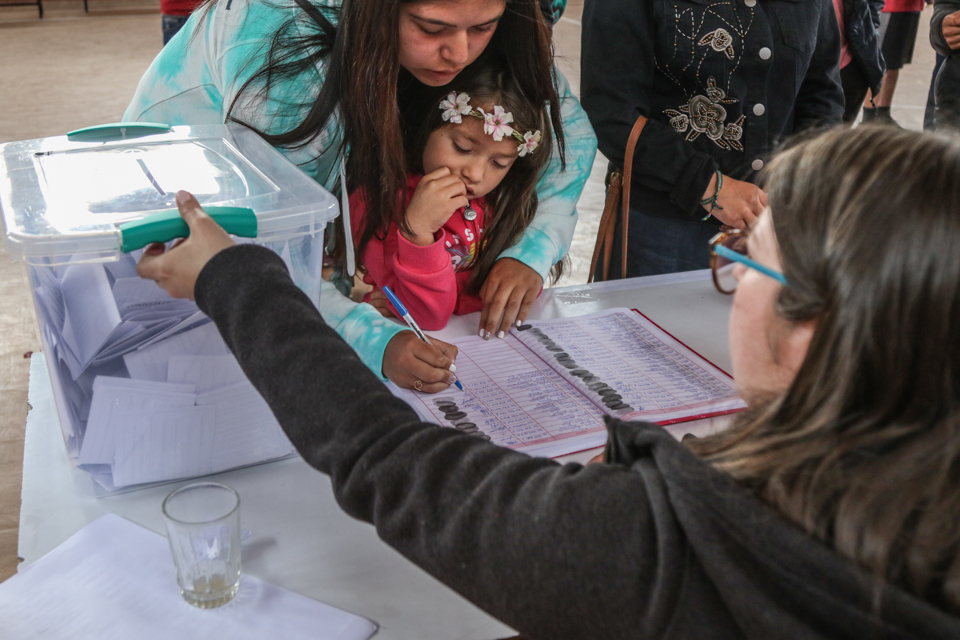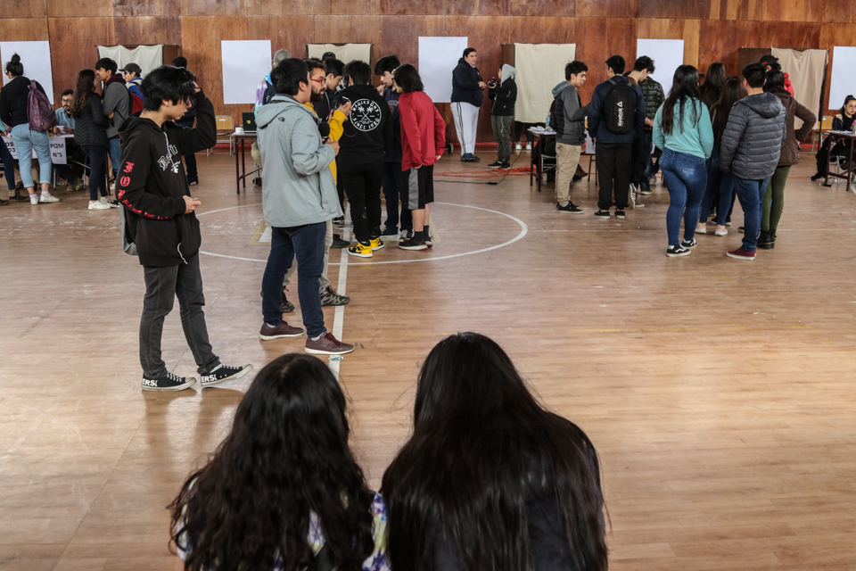 Este domingo 15 de diciembre se realizó en todo Chile la consulta ciudadana para conocer su opinión frente al cambio de Constitución, su metodología y otros temas de interés local. Revisa imágenes de lo que fue la votación en el gimnasio de la Escuela Pedro Quintana Mansilla, donde los menores de 18 a 14 años votaron.