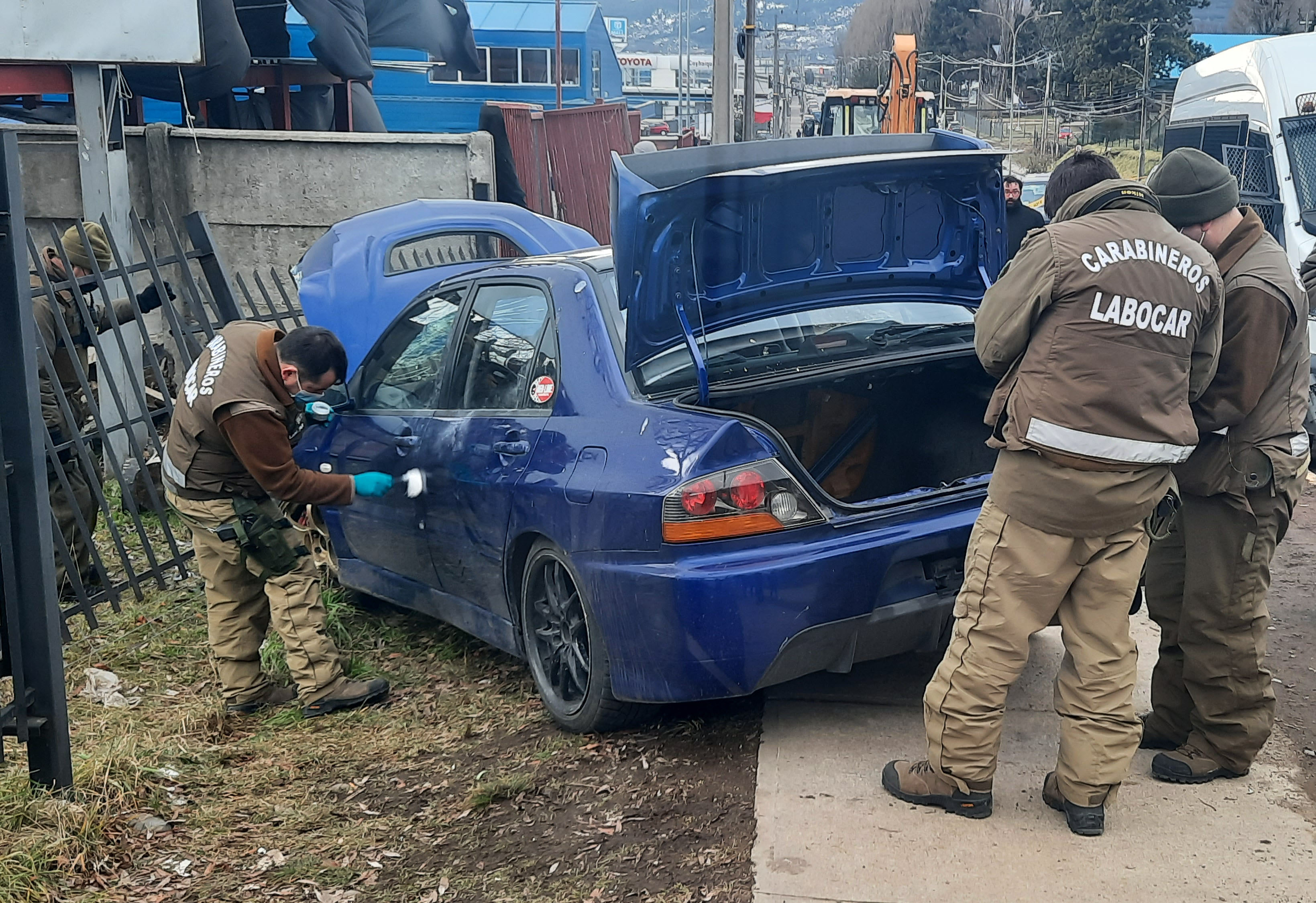 Producto de los balazos es que, el conductor pierde el control del vehículo y termina impactando la reja de una vivienda. Es en este instante cuando se inicia el procedimiento policial, quedando en manos de la SIP y Labocar de Coyhaique, ambos organismos especializados de Carabineros. Tal como lo informó la fiscal, María Inés Núñez.