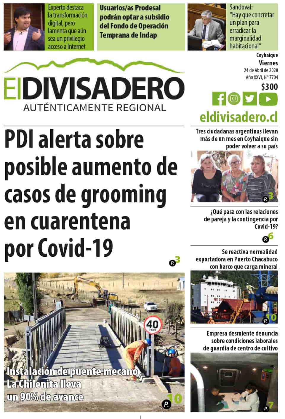 ORDEN DE NO PAGO Se da Orden de No Pago, por Extravío al Cheque N° 5961256, de la CUENTA CORRIENTE N° 02800007900, del BANCO ESTADO Sucursal Coyhaique